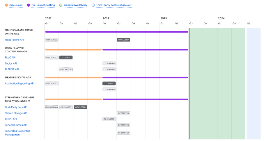 • We strongly recommend regularly keeping an eye on Google’s dedicated online Privacy Sandbox timeline for the exact timings of any future updates and origin trials for all the proposals.