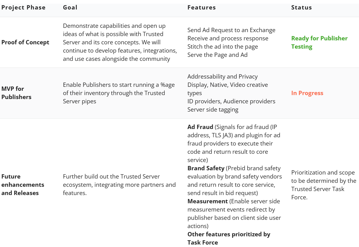 Overall the core intention of the Tech Lab Trusted Server solution is to shift critical advertising functions for Publishers – such as ad requests, auction execution, and creative delivery – from the client-side (browser) to a publisher-controlled server-side environment.
