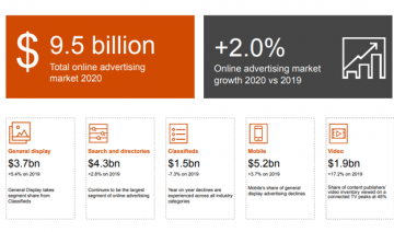 Growth was suppressed by the impact of the pandemic on classified listings revenue, which declined 7.3% year-on-year. However, the display market saw a 5.4% increase supported by another strong year for digital video investment, which was up 17.2%. Search advertising rose 2.6% to reach $4.3 billion which represents 45% of the total digital ad market. Content publishers saw more of the inventory purchased through programmatic methods with programmatic RTB, PMP and guaranteed representing 44% of display revenue generated in 2020 compared to 36% in 2019. CTV share of video continues to increase, up from 35% to 45% of content publishers’ video investment in 2020 compared to 2019.