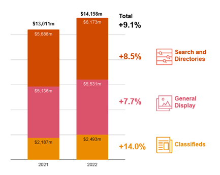 Monday 27th February 2023:   The Australian online advertising market reached $14.2bn spend for the 2022 calendar year according to data released today in the IAB Australia Online Advertising Expenditure Report (OAER) prepared by PwC Australia.   Total advertising expenditure increased 9.1% year-on-year, which while strong, was a slowdown from the growth rates of 36% reported in 2021.
