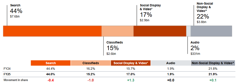 Thursday 28th August 2025: Driven by the summer Olympics and election spend, the Australian internet advertising market has continued its steady growth, increasing 10.6% year on year to reach $17.2bn for FY25. The data which comes from the IAB Australia Internet Advertising Revenue Report (IARR) released today, also found that while Search maintains the largest share of online advertising at 44%, video advertising has been the growth engine for the market and now represents 29% of all spend.