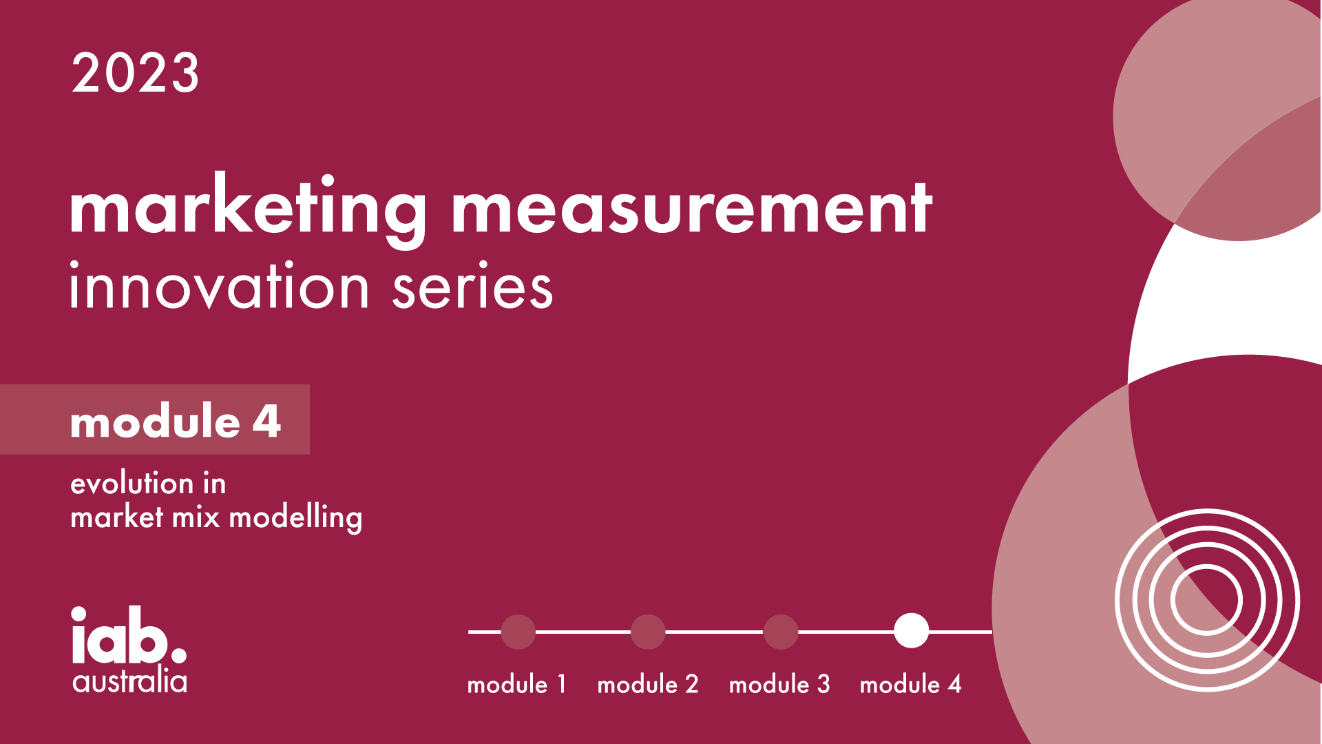 You may also be interested in IAB Australia’s Foundations of Market Mix Modelling online training course, that has been designed to introduce the Market Mix Modelling methodology and provide a foundational understanding of how it works and when you should use it.