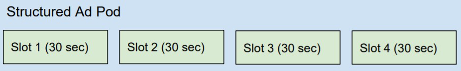 Structured Pod: The seller offers a fully defined pod structure; the number of ad slots, their slot in the ad pod, and duration is predefined and static.