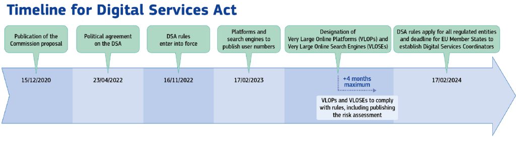The DSA will apply from 17th February 2024 to all Very Large Online Platforms (VLOPs) and Very Large Online Search Engines (VLOSE) across all of the EU Member States.