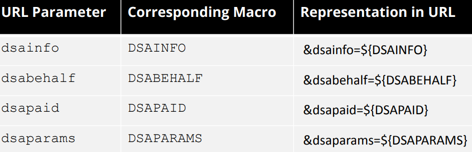 There is also URL based guidance for any ad systems that depend upon URLs to communicate information – with dedicated parameters and macros that can carry relevant DSA information in this manner if required.