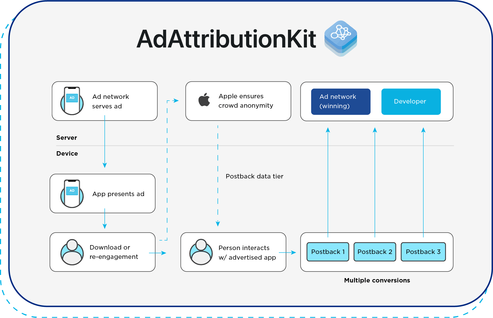 Below is a simplified illustration of the AdAttributionKit data flow: